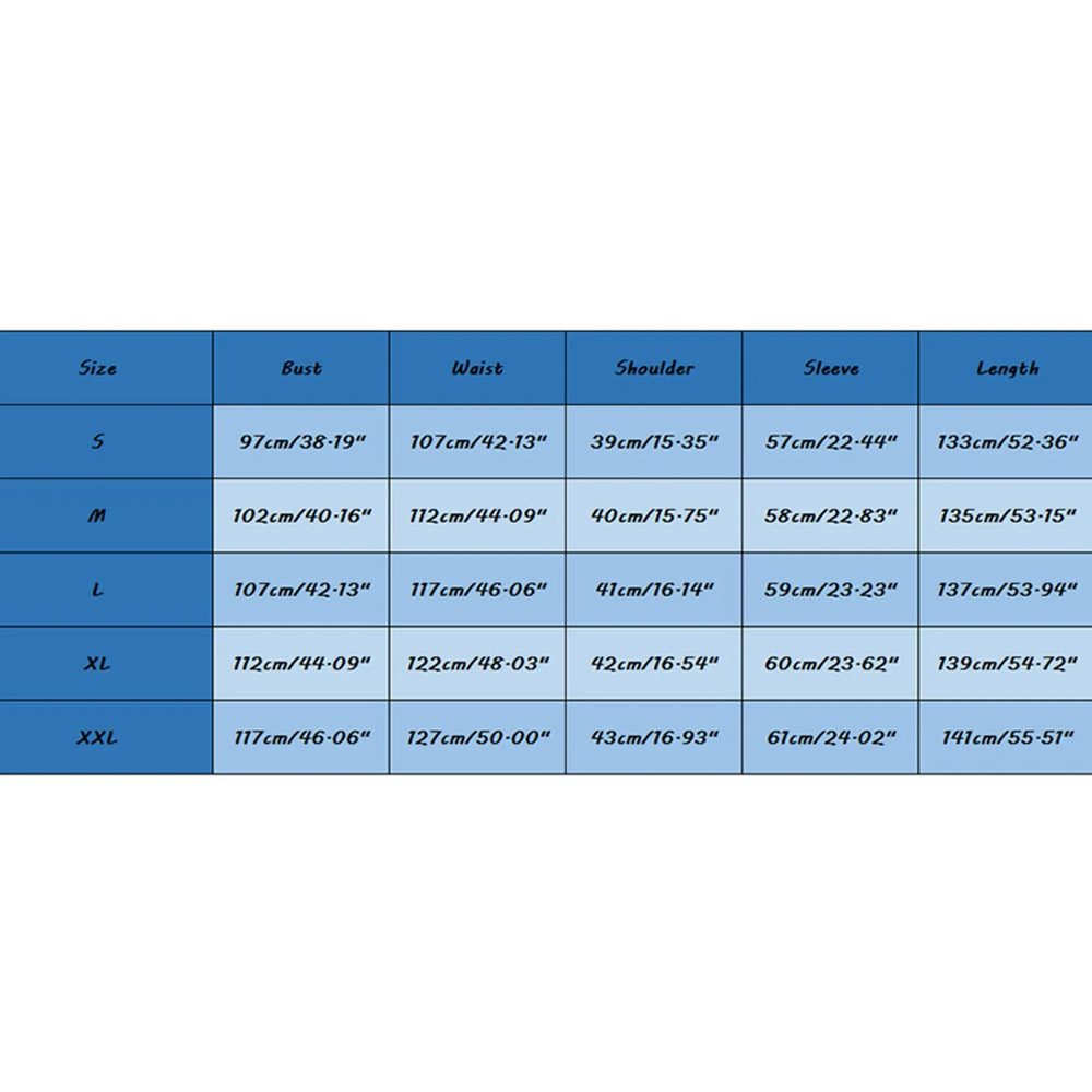 | Size | Bust | Waist | Shoulder | Sleeve | Length |