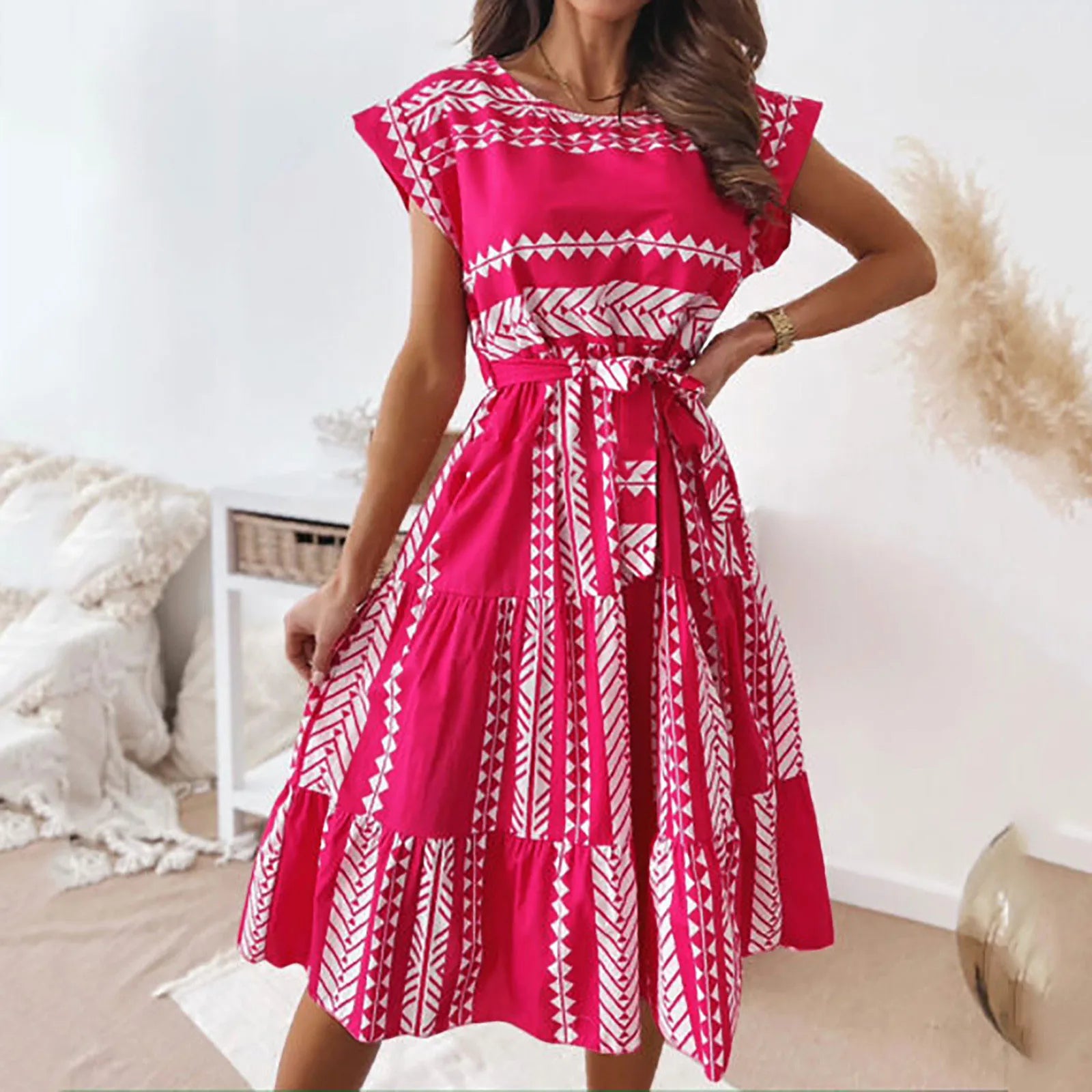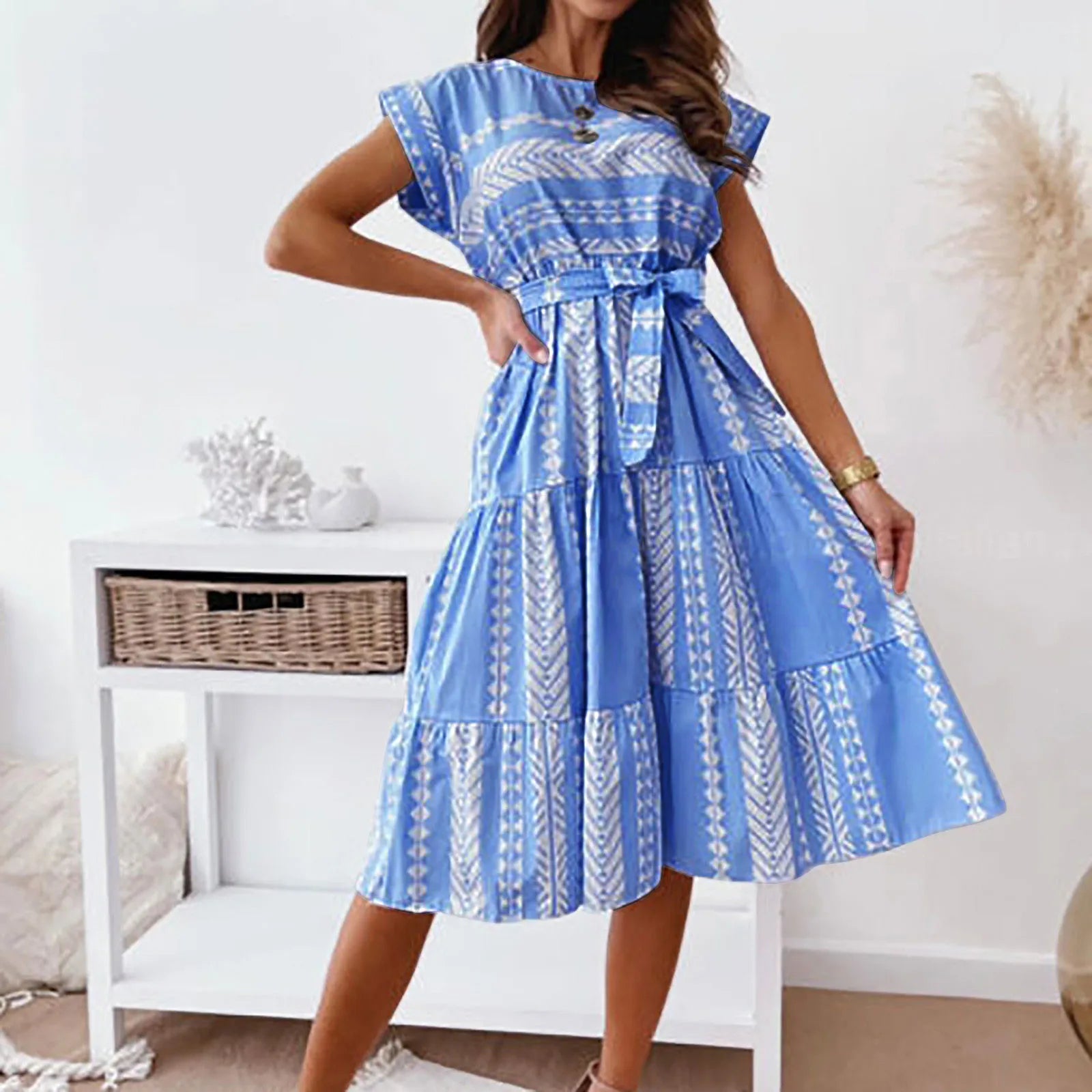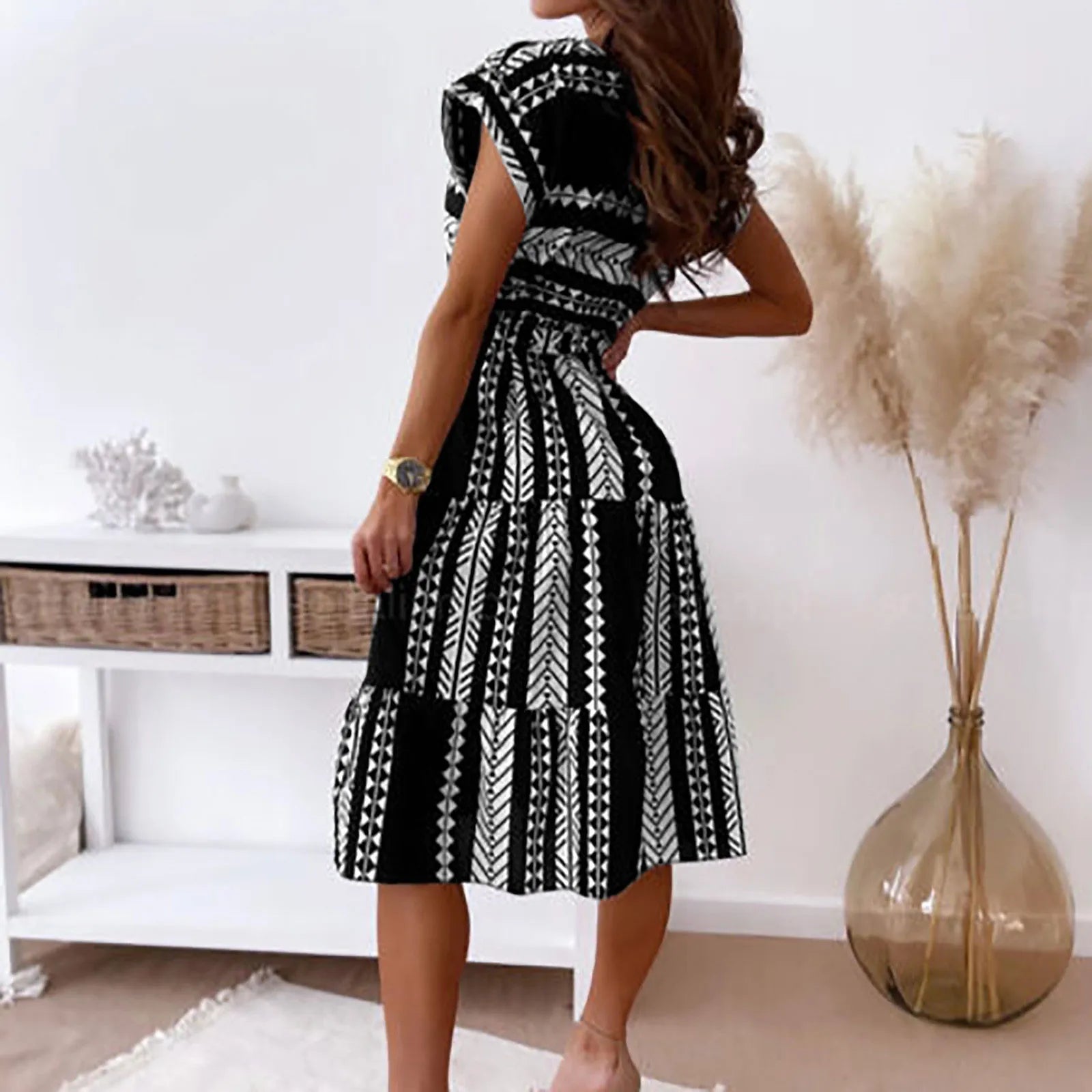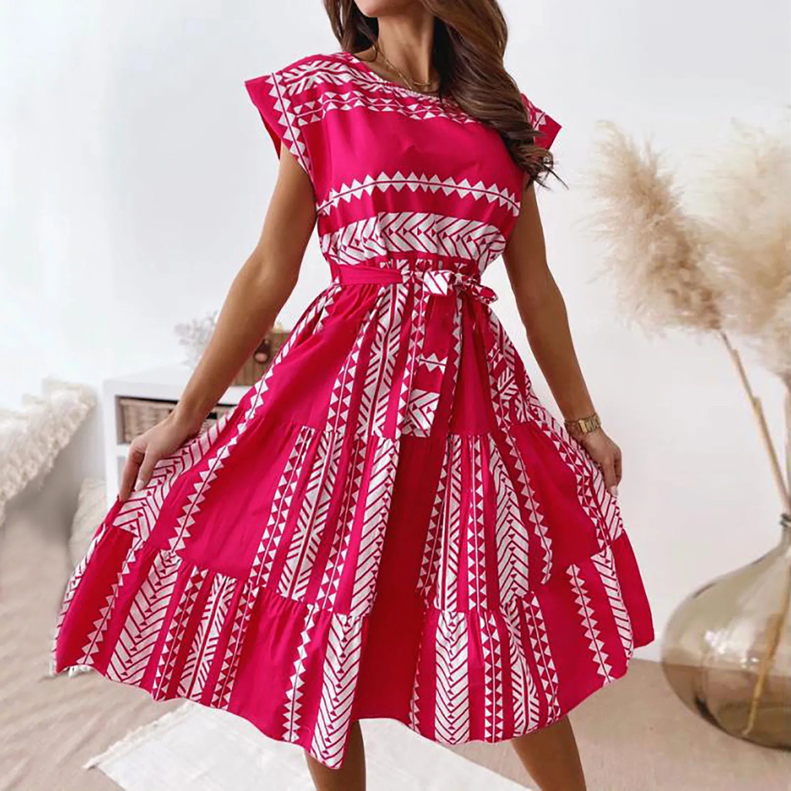 JuliaFashion - Womens Midi Evening Party Prom Irregularly Print Short Sleeve Lace-Up Slim Body Wrap Hips Long Clubwear Dress