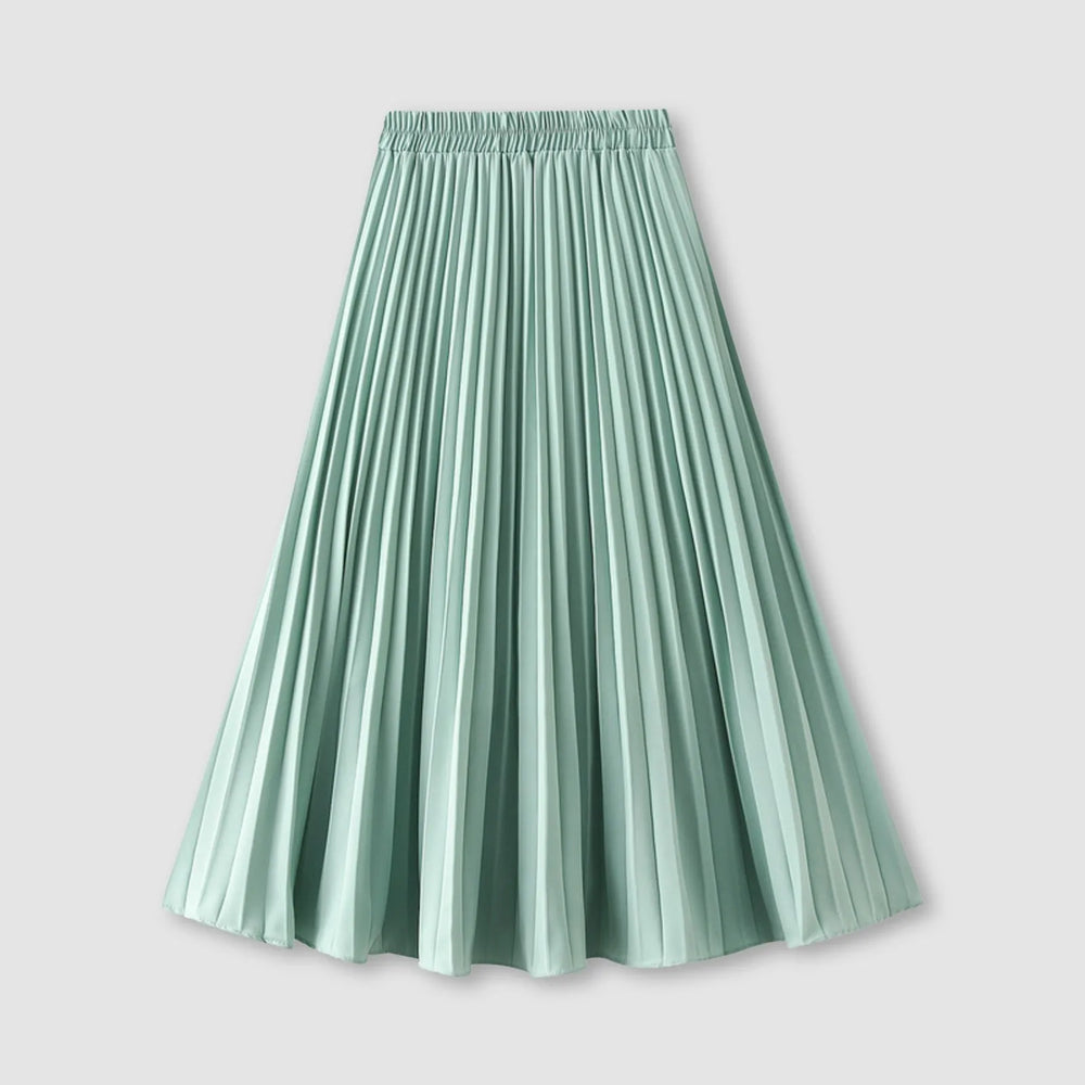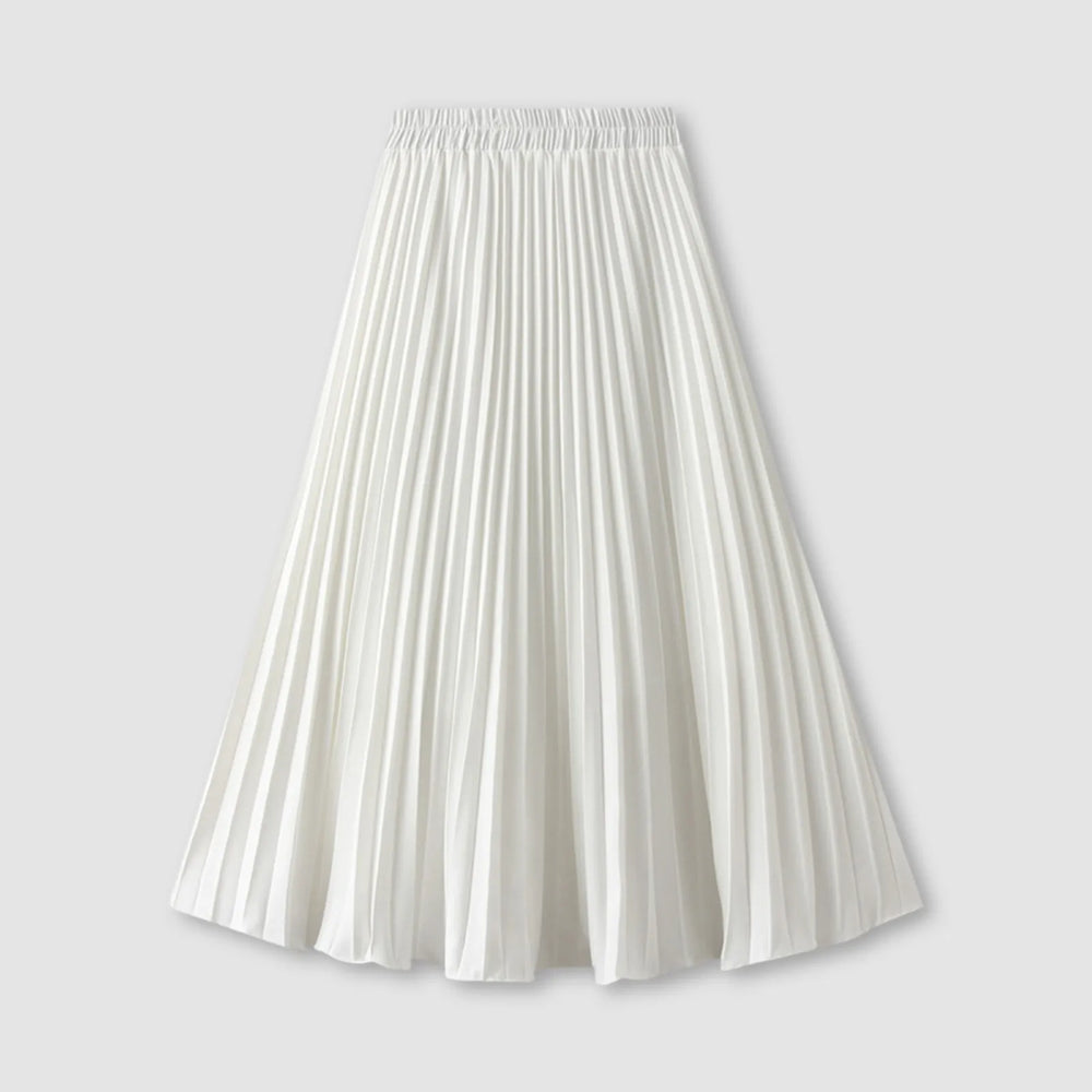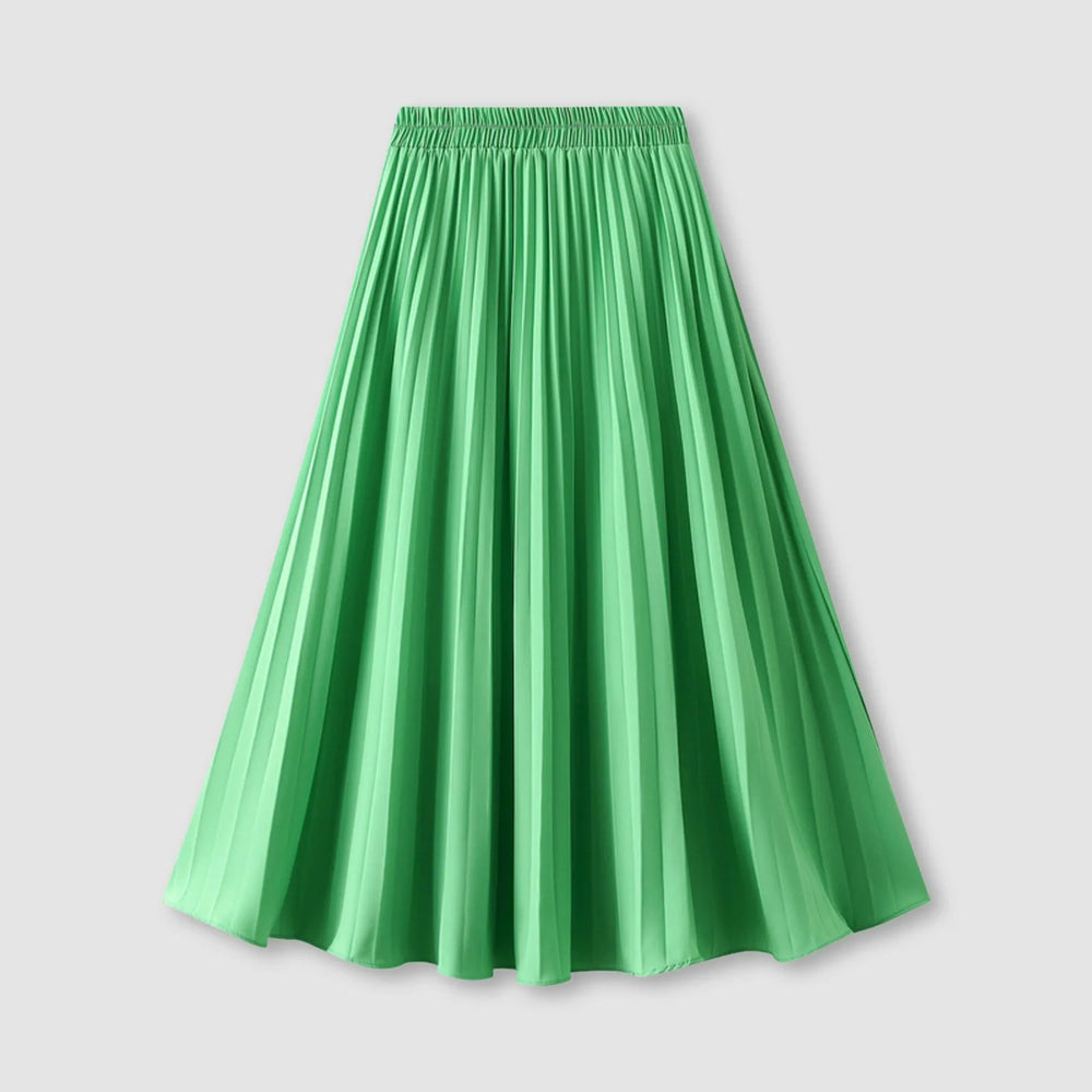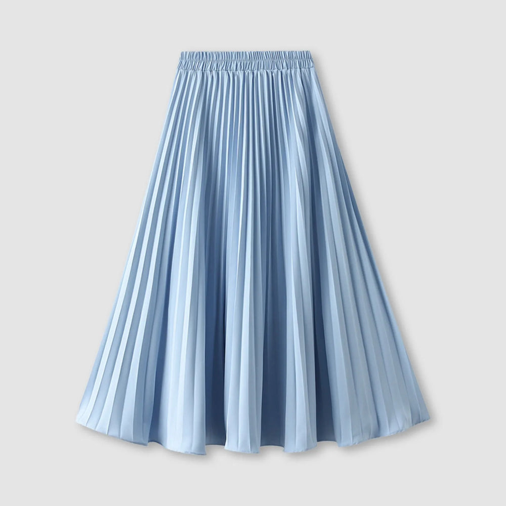 JuliaFashion - Women's Pleated Skirt Spring Summer Elastic Waist Slim Long A Line Skirt Double Layer Chiffon Skirts Solid Midi Pleated Skirt Dress