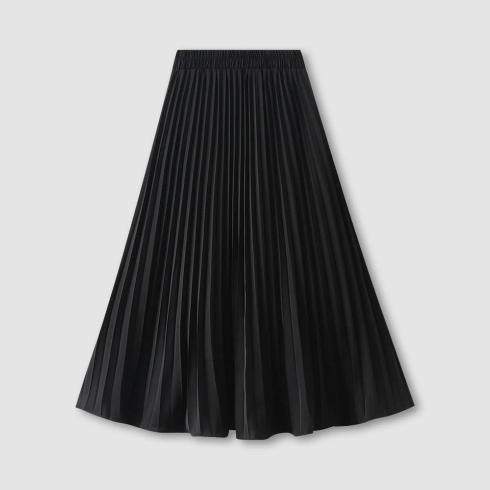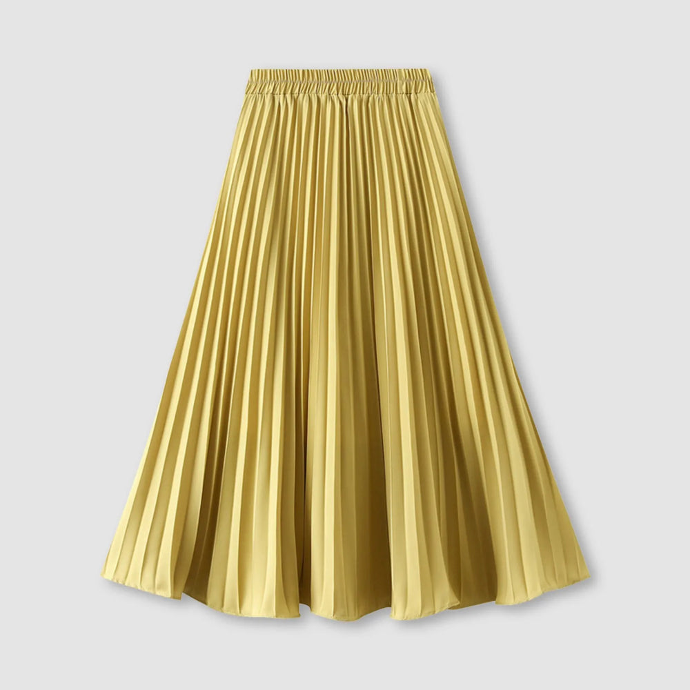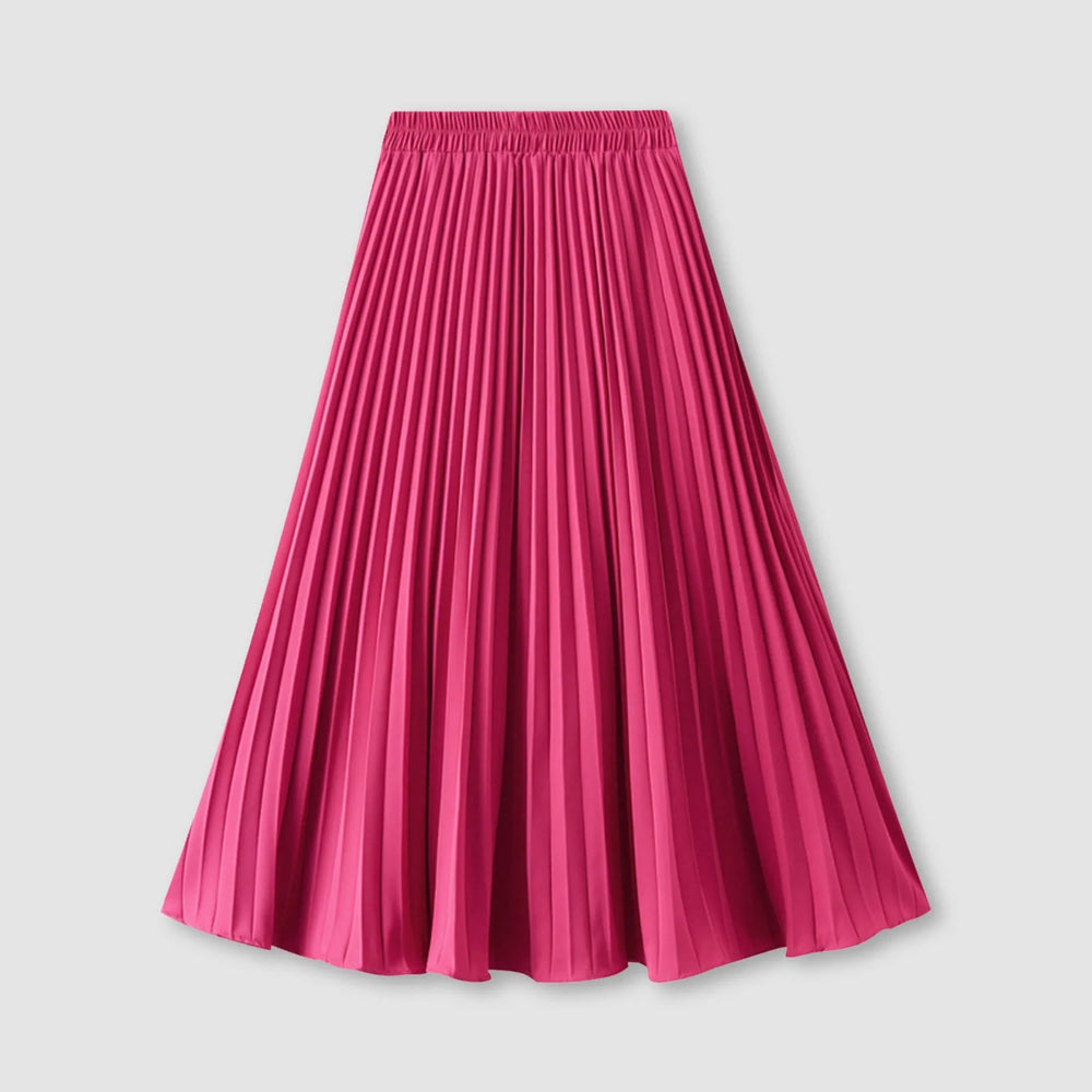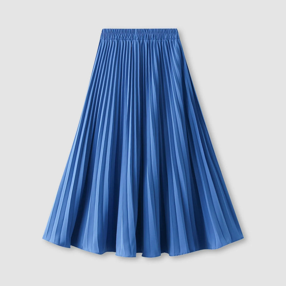 JuliaFashion - Women's Pleated Skirt Spring Summer Elastic Waist Slim Long A Line Skirt Double Layer Chiffon Skirts Solid Midi Pleated Skirt Dress