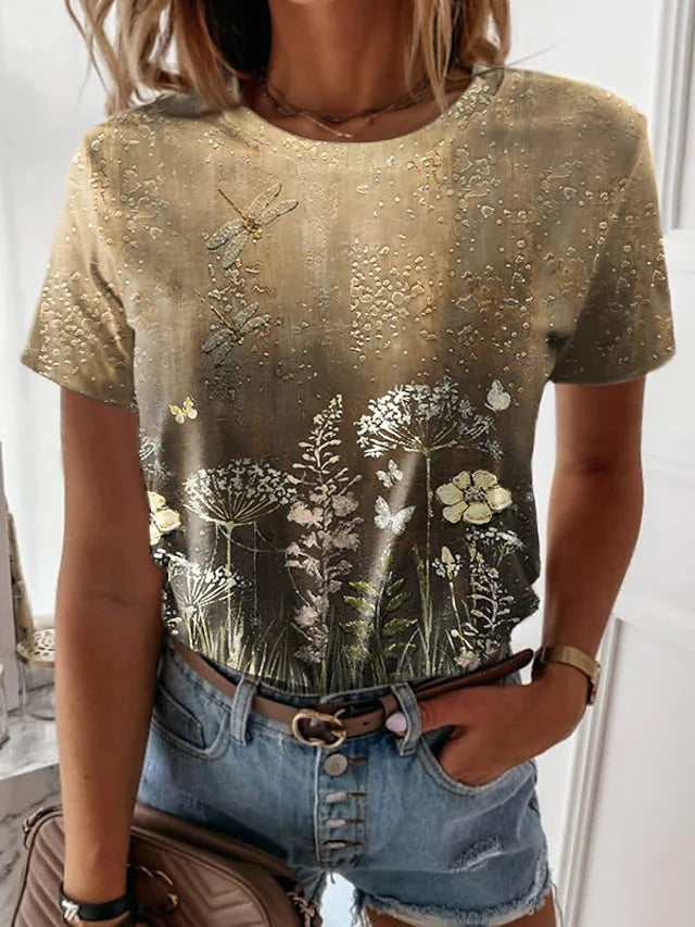 JuliaFashion - 2024 Women's Casual Holiday Weekend Floral Painting T Shirt